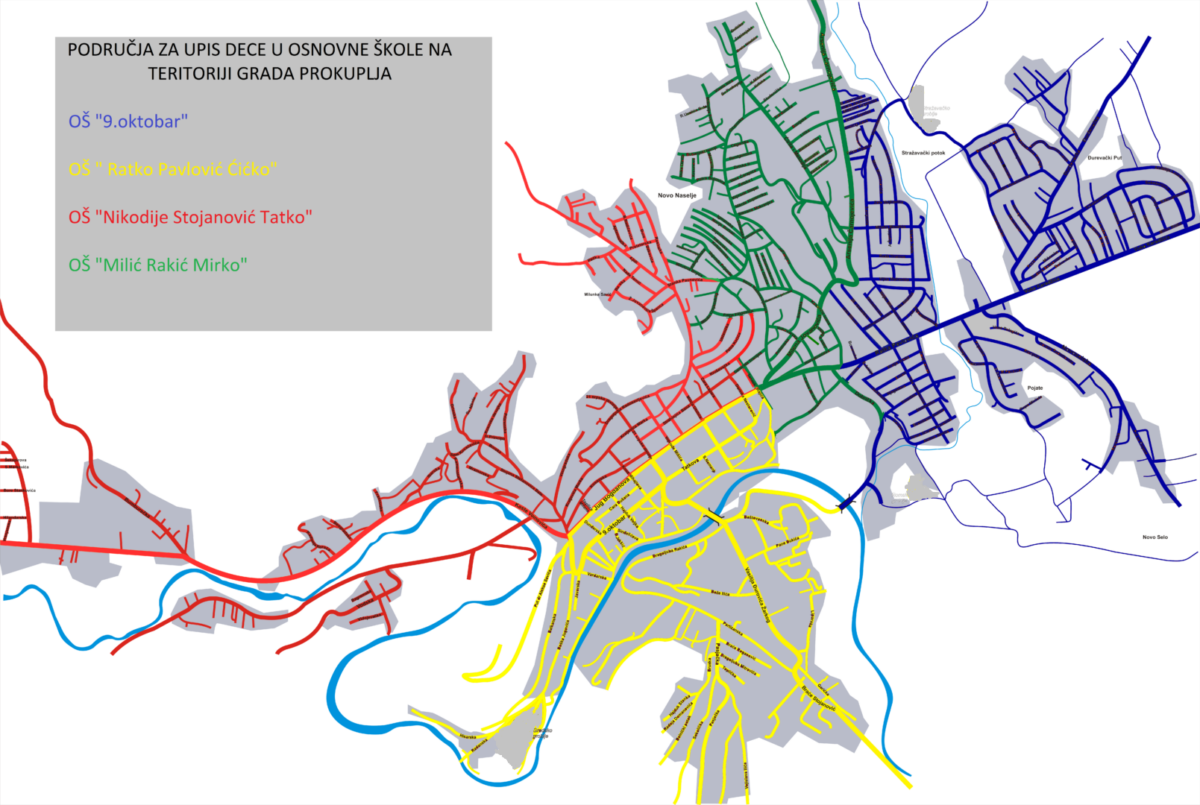 ПОДРУЧЈА ЗА УПИС ДЕЦЕ У ОСНОВНЕ ШКОЛЕ НА ТЕРИТОРИЈИ ГРАДФА ПРОКУПЉА