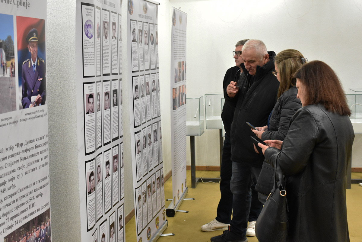 -Изложба је посвећена одреду ,,Чегар“, који је био један од најелитнијих одреда посебних јединица полиције, а имао је реон дејства на најтежим теренима, на Косову и Метохији. Из његових редова погинуло је 40 припадника и преко 100 је рањених. Изложба садржи фотографије са терена свих наших погинулих припадника, рекао је аутор изложбе и председник Удружења ветерана ПЈП Саша Пантелић.