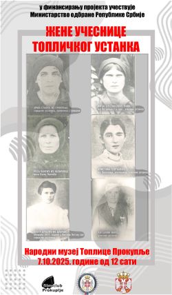 У Народном музеју Топлице, сутра 7. октобра у 12 часова, биће одржана пројекција филма „Жене учеснице Топличког устанка“, поводом дана када је 1912. године, формиран и у рат кренуо чувени Гвоздени пук „Књаз Михаило“.