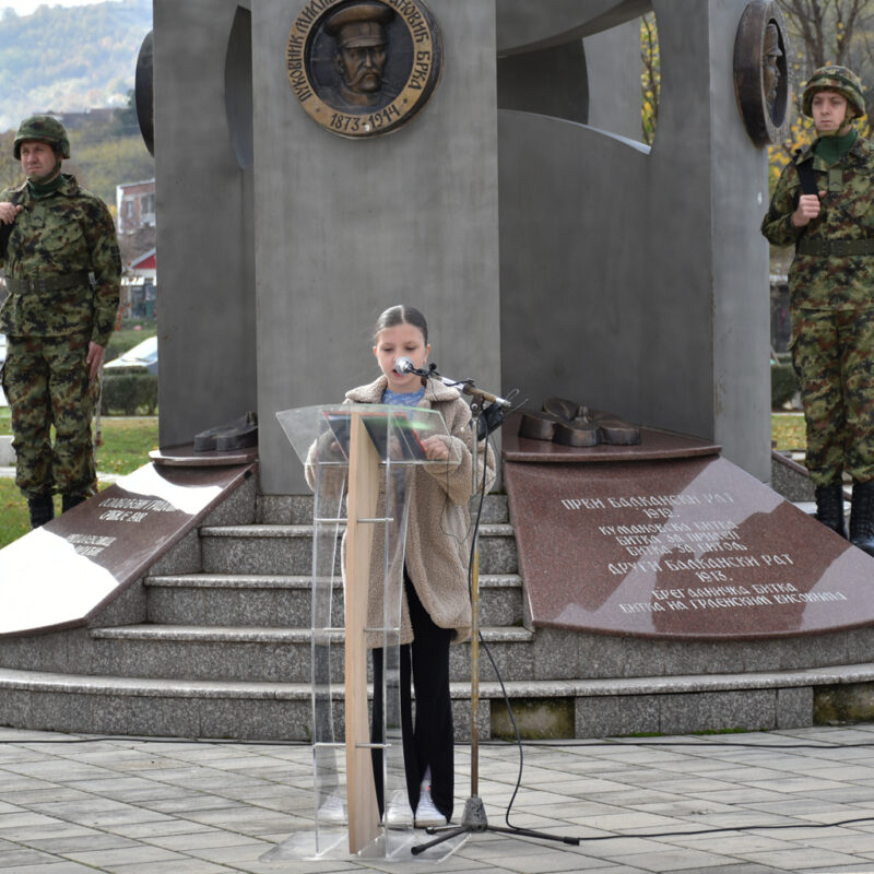 Поред чланова хора Музичке школе „Корнелије Станковић“, у програму обележавања овогодишњег 11. новембра, Дана примирја у Првом светском рату, учествовали су и рецитатори Књижевне омладине Прокупља, која ради при Дому културе, Маша Речевић и Софија Коцић.