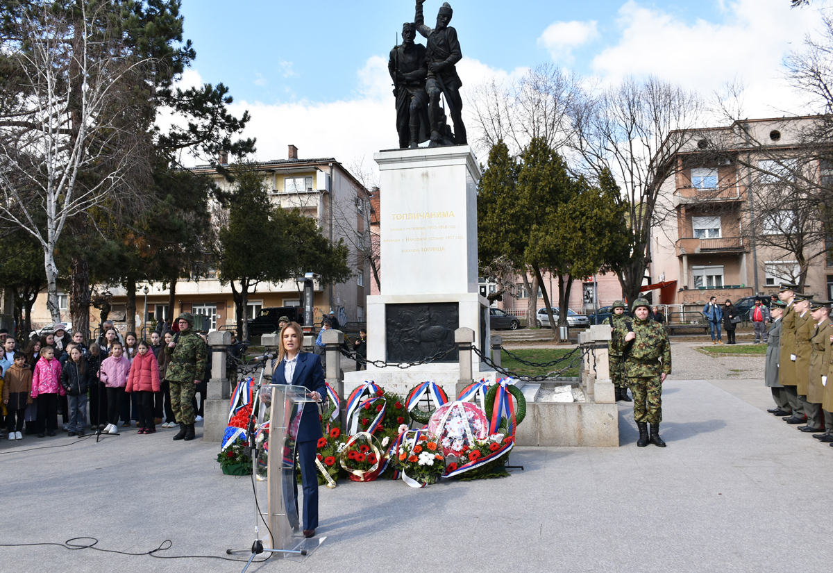 Обележавању 109. годишњице Топличког устанка присуствовала је министар за рад, запошљавање, борачка и социјална питања, Милица Ђурђевић Стаменковски, која је истакла да данас обележавамо годишњицу која нас подсећа зашто Топлицу називају колевком Гвозденог пука.