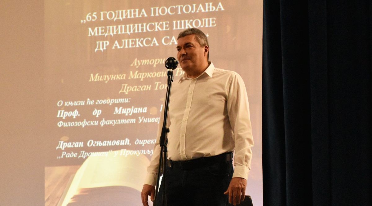 Бројне госте и пријатеље, међу којима су били некадашњи ђаци и радници школе, поздравио је директор Небојша Лукић, који је истакао да је монографија значајно и важно дело, које припада свим генерацијама, које су се образовале и образују у Медицинској школи у Прокупљу